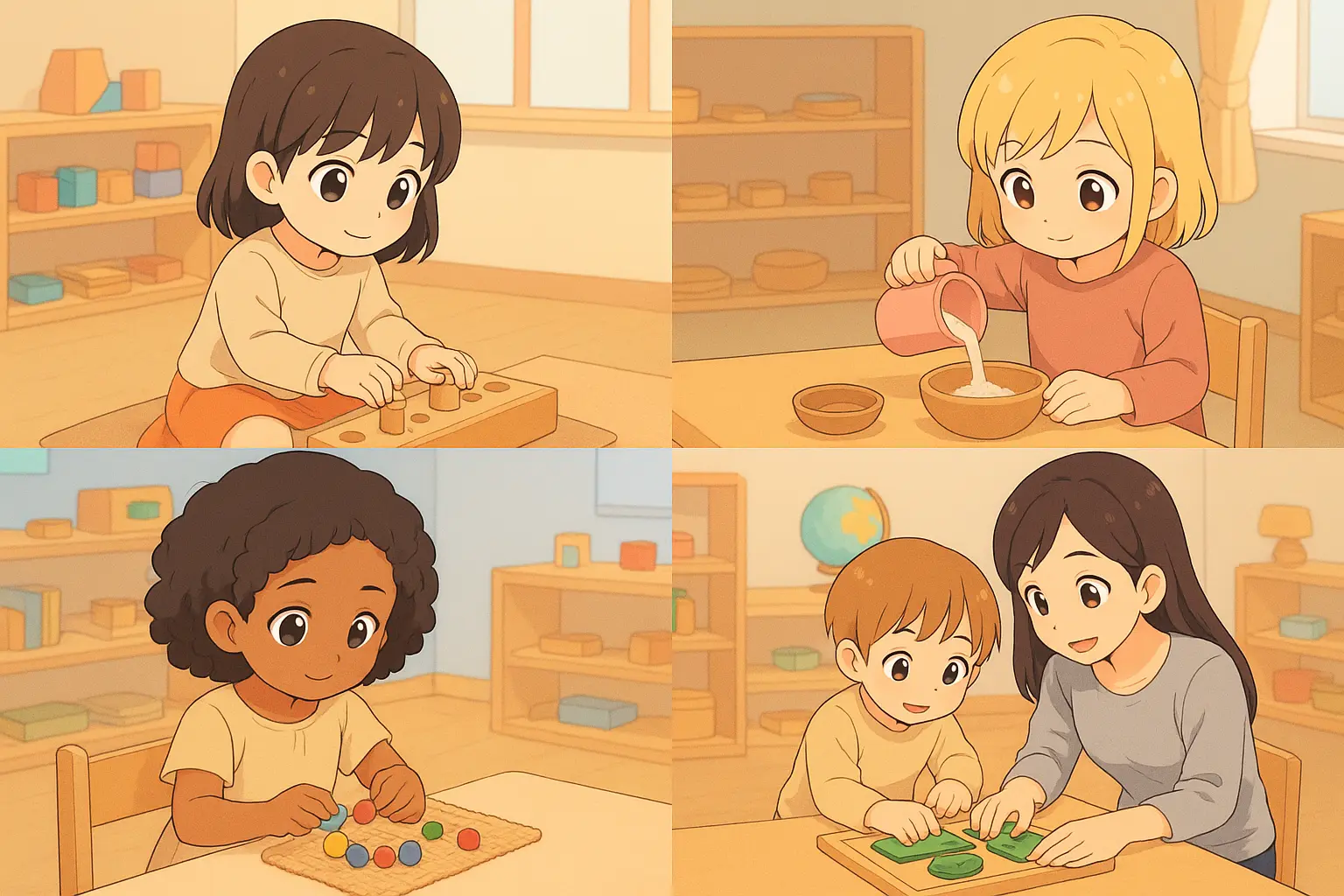 This is an extremely gentle and loving staff. They teach in a classic Montessori approach through practical play, child motivated interest, and decision making. The calm and positive energy that the staff brings is the special sauce!